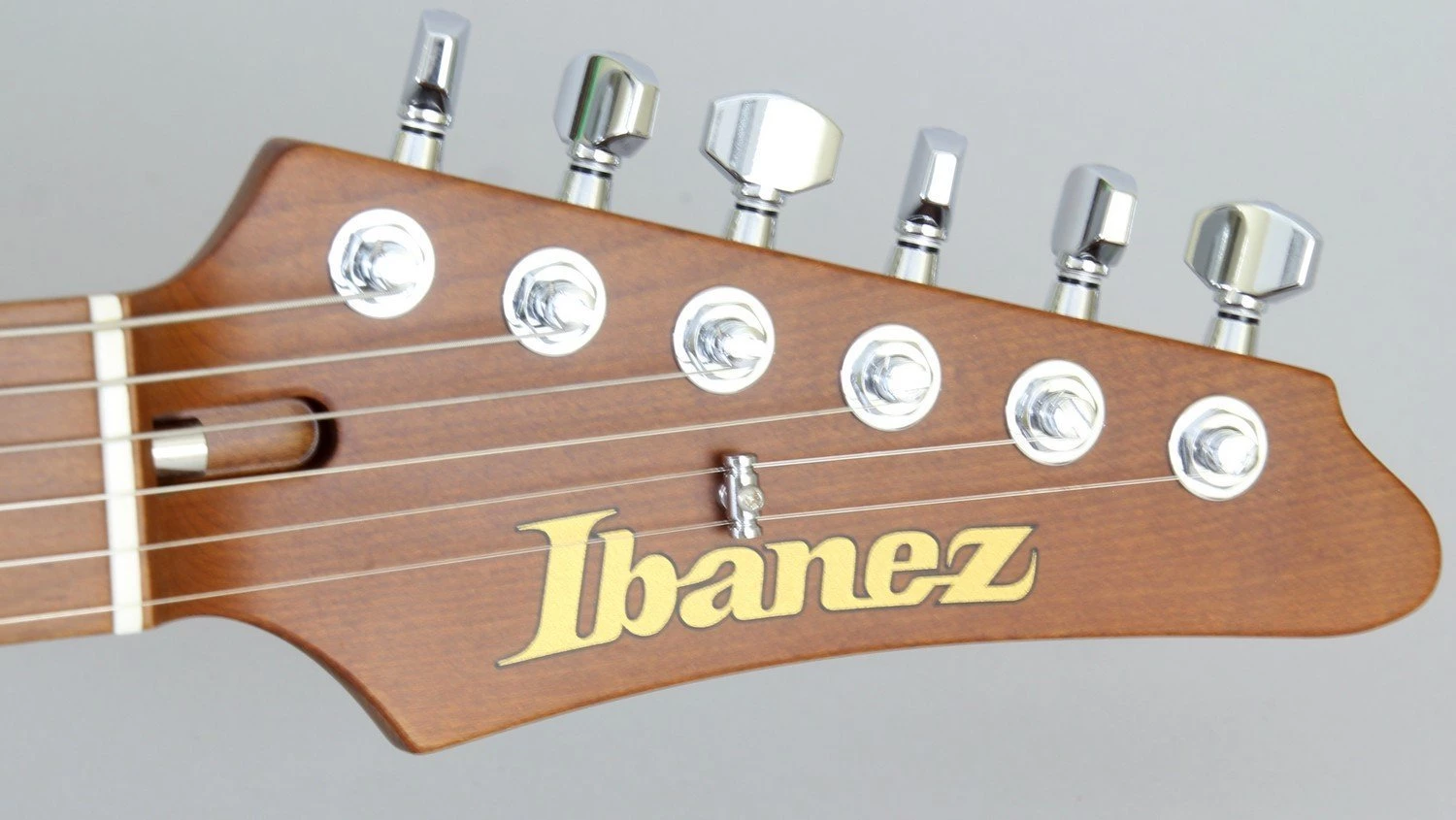 For 2018, Ibanez is introducing a new line of solid body electric guitars called the AZ series. Within that line, we are excited to announce the release of the AZ2204F. Even though Ibanez tends to be a guitar brand associated with modern designs, we have decades of accumulated knowledge and a history to draw from, so pushing boundaries is nothing new for us. The AZ series carries with it all of the hallmarks of these tried and tested Ibanez qualities: the smooth oval neck profile, the well balanced asymmetrical body shape, and the neck heel allowing unrivaled playability an upper fret access. It also features a new tremolo bridge, as well as newly developed Hyperion pickups, produced in collaboration with Seymour Duncan®. All of these elements help the AZ push the existing boundaries of playability and sound to the next level for modern cutting-edge players, while also providing a touch of classic styling. A first in guitar neck construction, The AZ’s neck is manufactured with S-TECH WOOD® treated Maple. This nitrogen-heating-treatment increases the wood’s stability, durability, water resistance and tolerance of temperature changes. The neck is sealed with an oil finish (sealer coat) which helps make it feel similar to a well-played guitar neck. In order to achieve a supremely comfortable neck, the fretboard edge is finished with a smooth curve that extends through the border between the fretboard and the neck to the fretboard itself. The Oval C neck shape allows for a comfortable grip in the lower register, and a more modern feel in the higher register. Luminescent side dots also provide a great point of reference on dark stages. A shallow rear body contour combines with a larger forearm contour increases player comfort. The pickups, designed in collaboration with Seymour Duncan®, are a moderate output pickup, sporting Alnico-5 magnets to keep the clarity of the fundamental tone while using distortion. This design also provides a dynamic and clear pick attack. From treble to bass, the overall tone is evenly balanced and works well with various effects. A newly developed dyna-MIX 9 switching system provides excellent versatility in that it has 9 different possible pickup combinations by way of the mini toggle and 5-way blade switch. The T1802 bridge is a result of direct collaboration between Ibanez and GOTOH®. It features machined titanium saddles and a solid steel tremolo block for a quick response and improved articulation. The narrower string spacing allows for easy picking across strings, for styles such as string skipping and hybrid picking. The snap and hold tremolo arm socket makes it easy to load a tremolo arm, and the arm torque adjuster allows for fine torque adjustments without any tools. The stud lock screws lock the stud bolts in place, for better tuning stability and resonance. The 2-point floating tremolo system creates a super smooth tremolo motion in either direction. The AZ is also equipped with GOTOH® H.A.P®-M locking machine heads, which have an established reputation for tuning stability. Its H. A. P® (Height Adjustable Post) system allows for the adjustment of string posts to attain appropriate tension on each individual string. Hardshell case included.