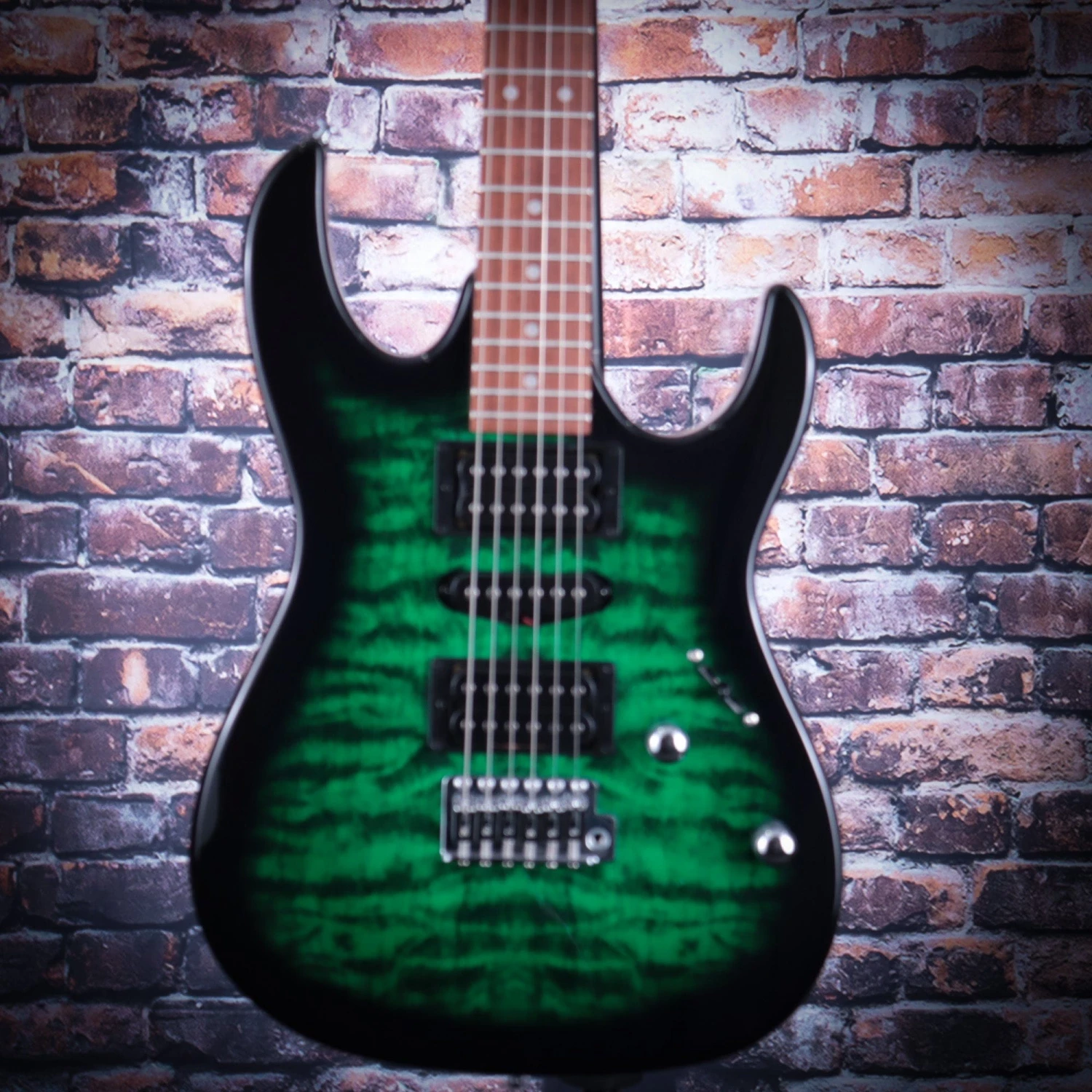 Your first guitar shouldn’t cost a lot, but that doesn’t mean it should feel our play cheap. The GRX70QA is a quality Instrument that is worthy of helping the beginner start down the path to achieving their dreams. Featuring a Poplar body with quilted maple art grain top, HSH infinity pickups and chrome hardware.