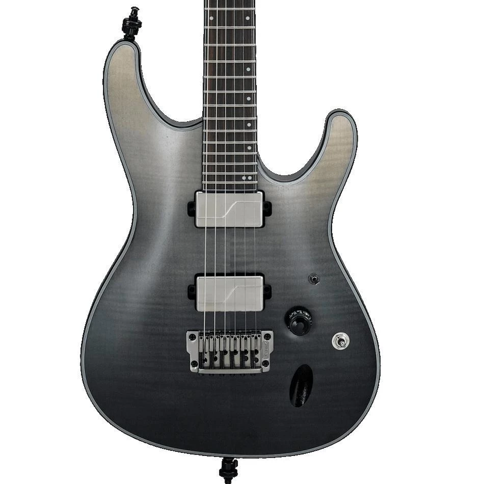The Axion Label was made for metal, but offers even more for the adventurous players out there. The Axion Label models feature forward-looking developments in sound, playability and looks that take performances higher, deeper and heavier. Arm yourself with the Axion Label and get ready to break some new The S61AL features a Macassar Ebony fretboard that provides a tight low end with a quick response and the extremely rigid, super-thin and ultra-playable Nitro Wizard 5-piece Panga Panga/Walnut neck that substantially increases sustain. The Sub Zero treated frets can stand up against the hardest riffing and string-bending. The luminescent side dot inlays make it easy for players to perform on dark stages and match the dazzling luminescent Ibanez headstock logo. The Fishman Fluence Modern Humbucker pickups provide an aggressive tone and a powerful attack without excess noise. The Voicing switch allows the pickups to switch from a modern, active high output sound to a crisp, clean and fluid sound. The Gibraltar Standard II enables the optimal transfer of each string’s vibration. The Gotoh® locking tuners provide tuning accuracy and allow for quick, efficient string changing and the Schaller S-Lock strap lock pins hold a strap securely but make it easy to put the strap on and take off quickly.
