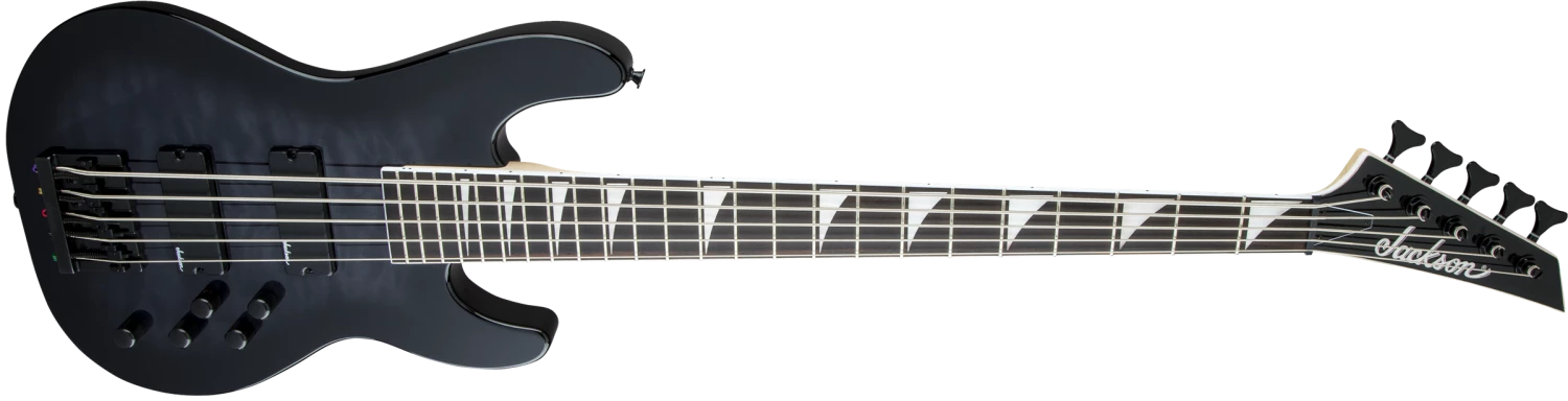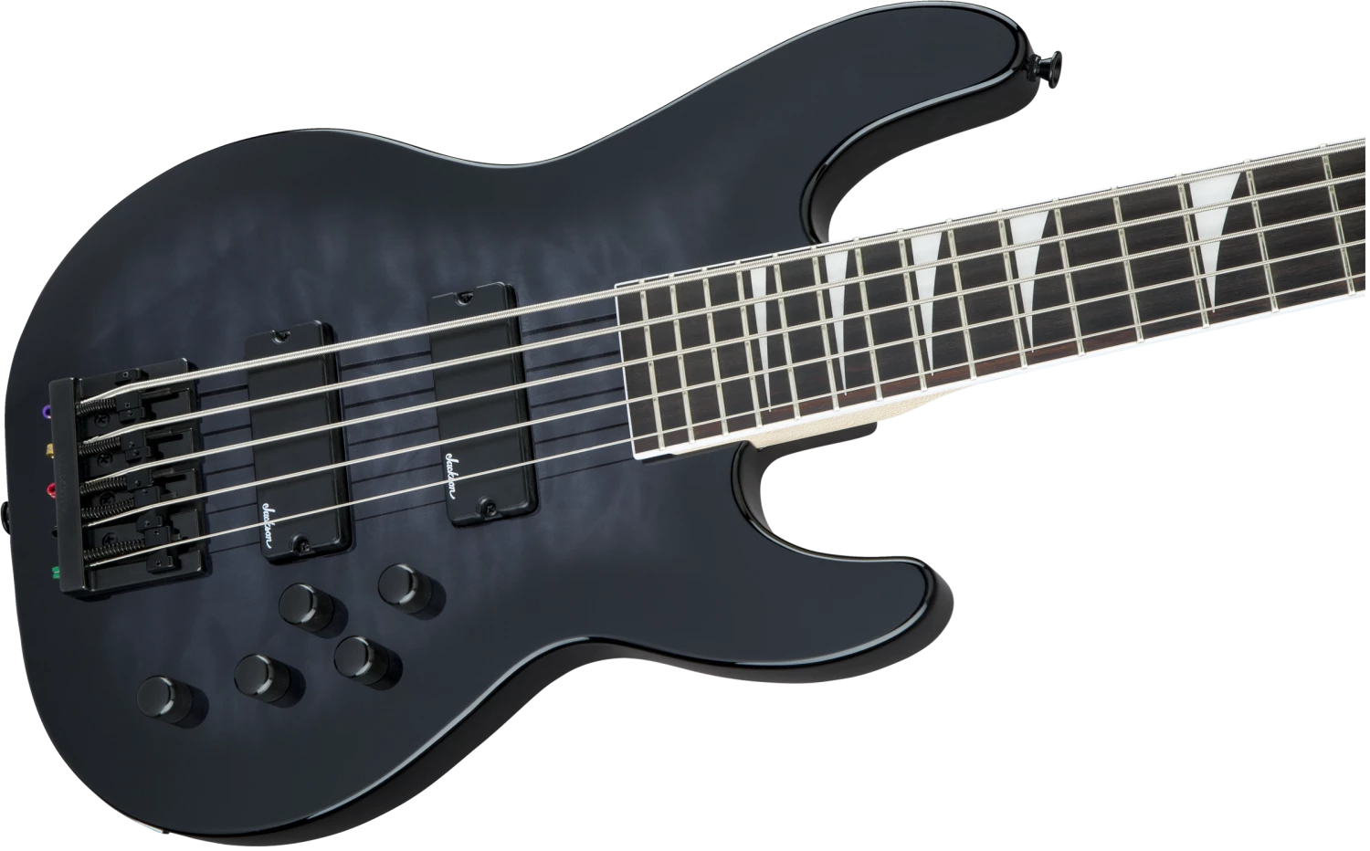 A thunderous bass loaded with vibe and value, the JS3VQ is available in a striking Cherry Burst, Transparent Black Burst or Transparent Red Burst finish with black hardware and a Jackson pointed 5-in-line headstock.