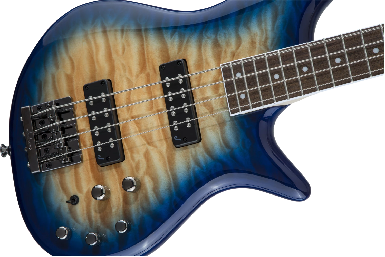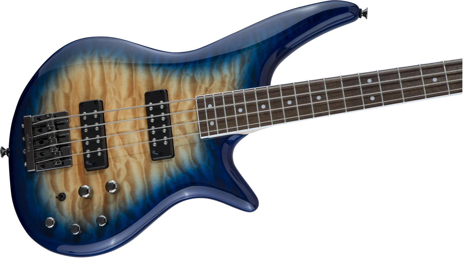 Offering more boom for your buck, the 4-string, 34″-scale Spectra Bass JS3Q comes in a vibrant Amber Blue Burst or Dark Sunburst finish with black nickel hardware and a unique Jackson 2×2 headstock with an understated J logo.