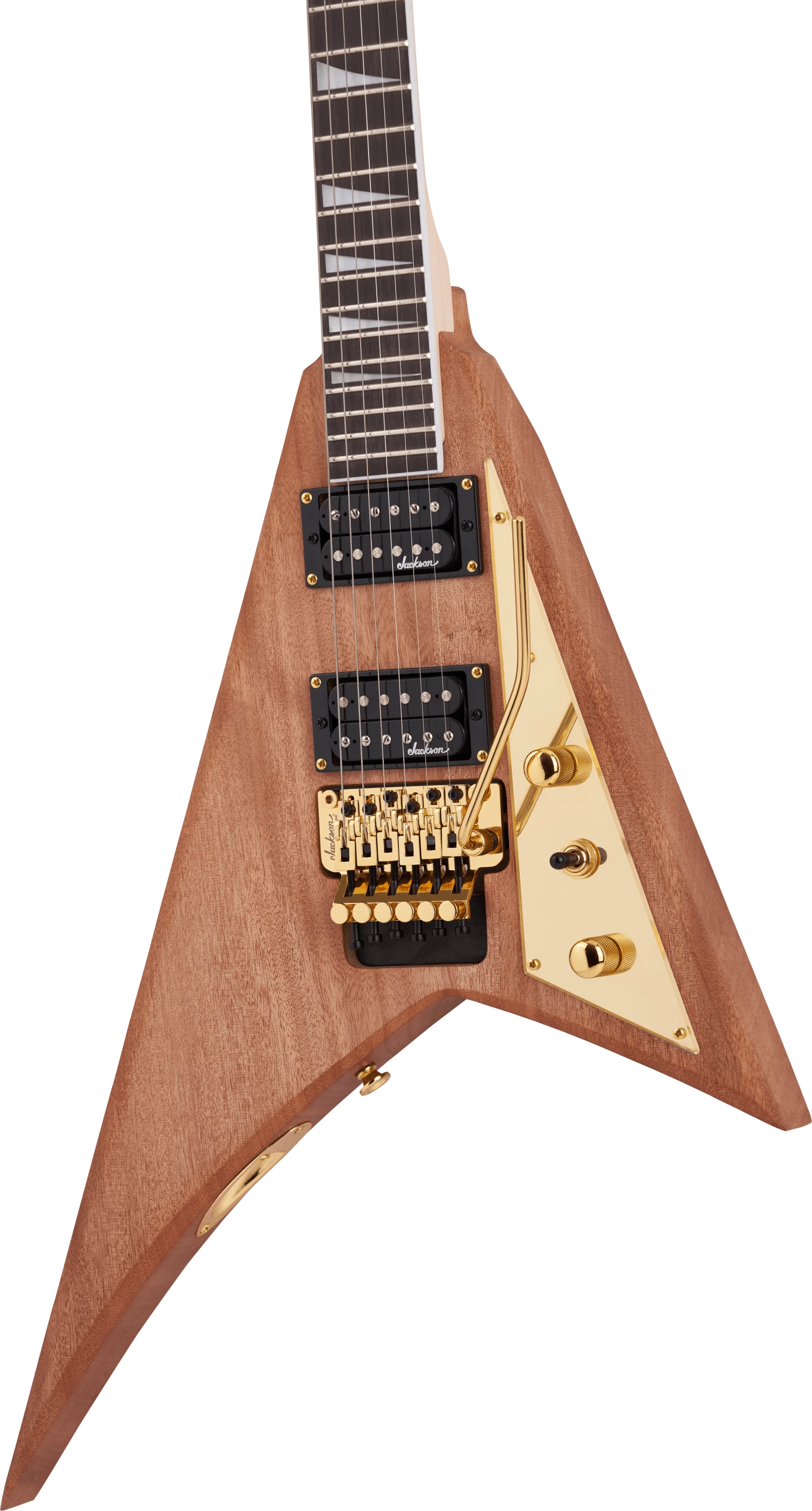 The JS Series Rhoads MAH JS32 features an offset angular mahogany body and a bolt-on maple speed neck with graphite-reinforcement rods for added stability against warping and scarf joint for reduced playing fatigue. Hosting 24 jumbo frets and pearloid sharkfin inlays, the 12”-16” compound radius bound amaranth fingerboard creates the ideal playing surface for fat riffs and easy chording near the nut while gradually flattening in the upper registers for lightning-quick solos and wide bends without fear of fretting out.
