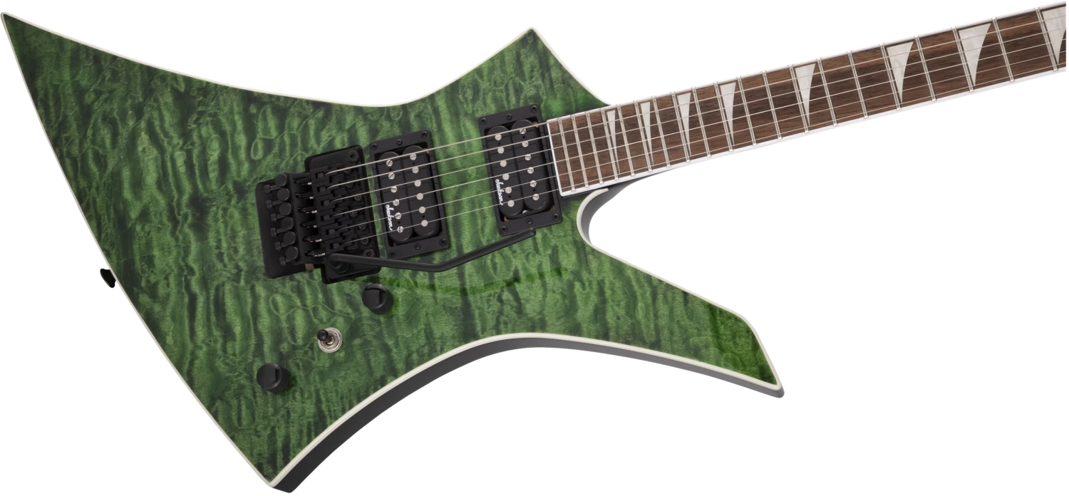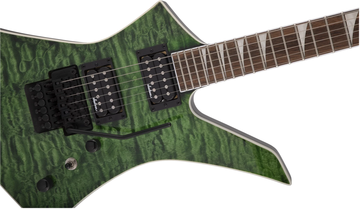 A pair of volcanic Jackson® high-output humbucking bridge and neck pickups give the KEXQ plenty of tonal girth with searing high end and crystal clear mids. Tone is customizable with a three-way toggle switch and single volume and tone controls, while a Floyd Rose® Special double-locking tremolo system provides superior string stability and dynamic tremolo action.