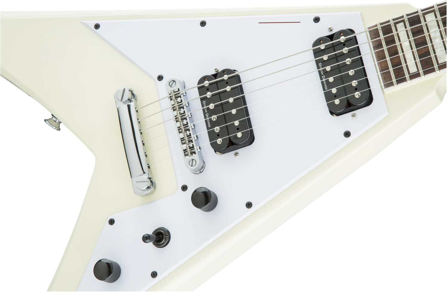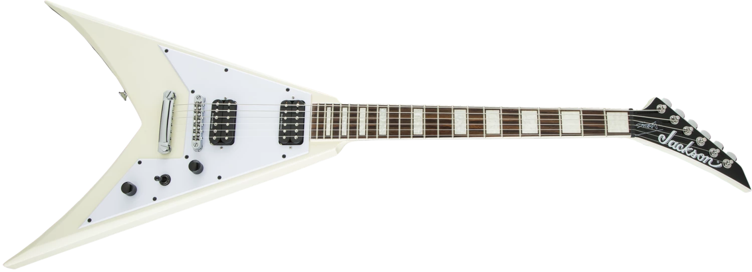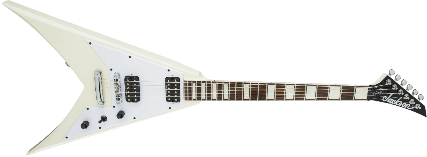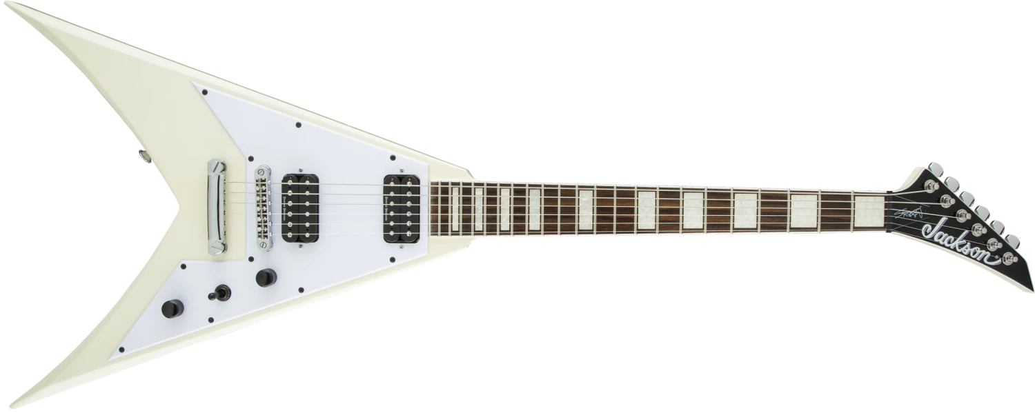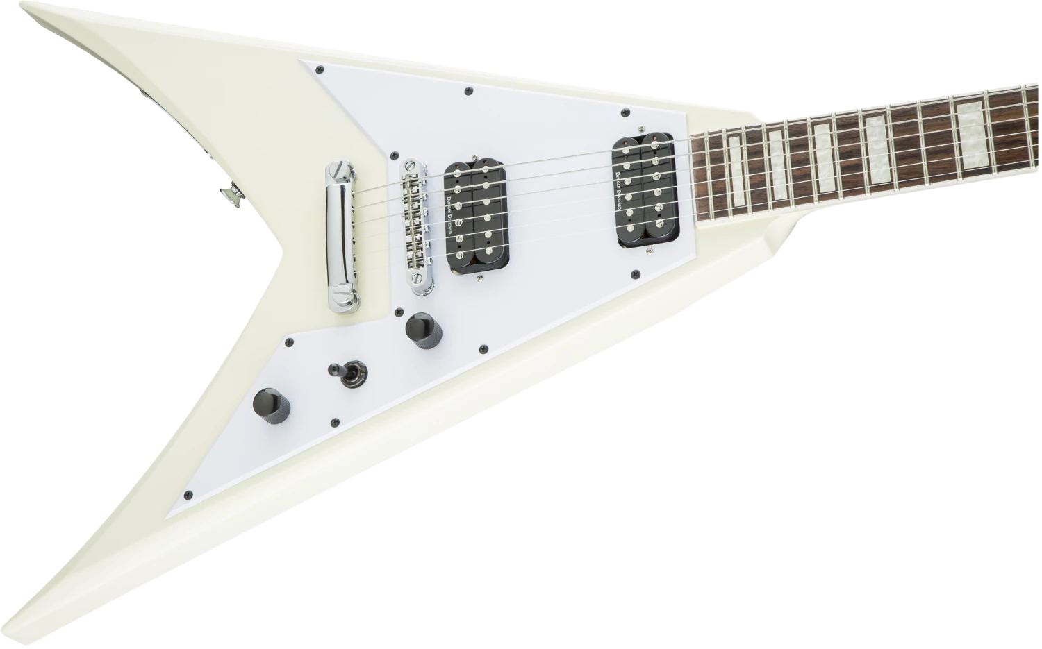 Experience the veritable thrash godfather’s signature tone with the X Series Scott Ian King V™ KVXT, offering a 24.75” scale length, mahogany body, through-body maple neck with graphite reinforcement and scarf joint. The 12”-16” compound radius laurel or rosewood fingerboard features 22 jumbo frets and pearloid block inlays. Its versatile voice is powered by a pair of Duncan Designed™ humbucking pickups— a biting HB-103B humbucking bridge pickup is matched to a powerful HB-103N humbucking neck pickup for articulate tone. This signature axe also features a Jackson compensated and adjustable TOM-style bridge with anchored tailpiece, Jackson die-cast tuners and pointed 6-in-line-headstock.