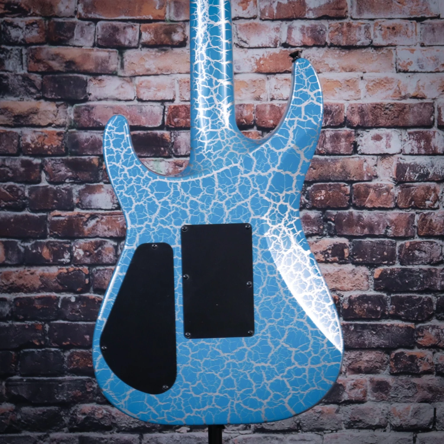 The SL3X DX Crackle comes loaded with a select power trio of Jackson pickups; high-output mini rail humbucking pickups in the middle and neck positions are matched to a high-output humbucking bridge pickup for complementary harmonics and highly dynamic responsiveness. Single volume and tone controls along with a five-way blade switch shape the formidable pickups’ output, making their power yours to command. The recessed Floyd Rose® Special double-locking tremolo bridge system is fluidly easy to use, ensuring that your axe precisely returns to its original tuning after every dive-bomb.