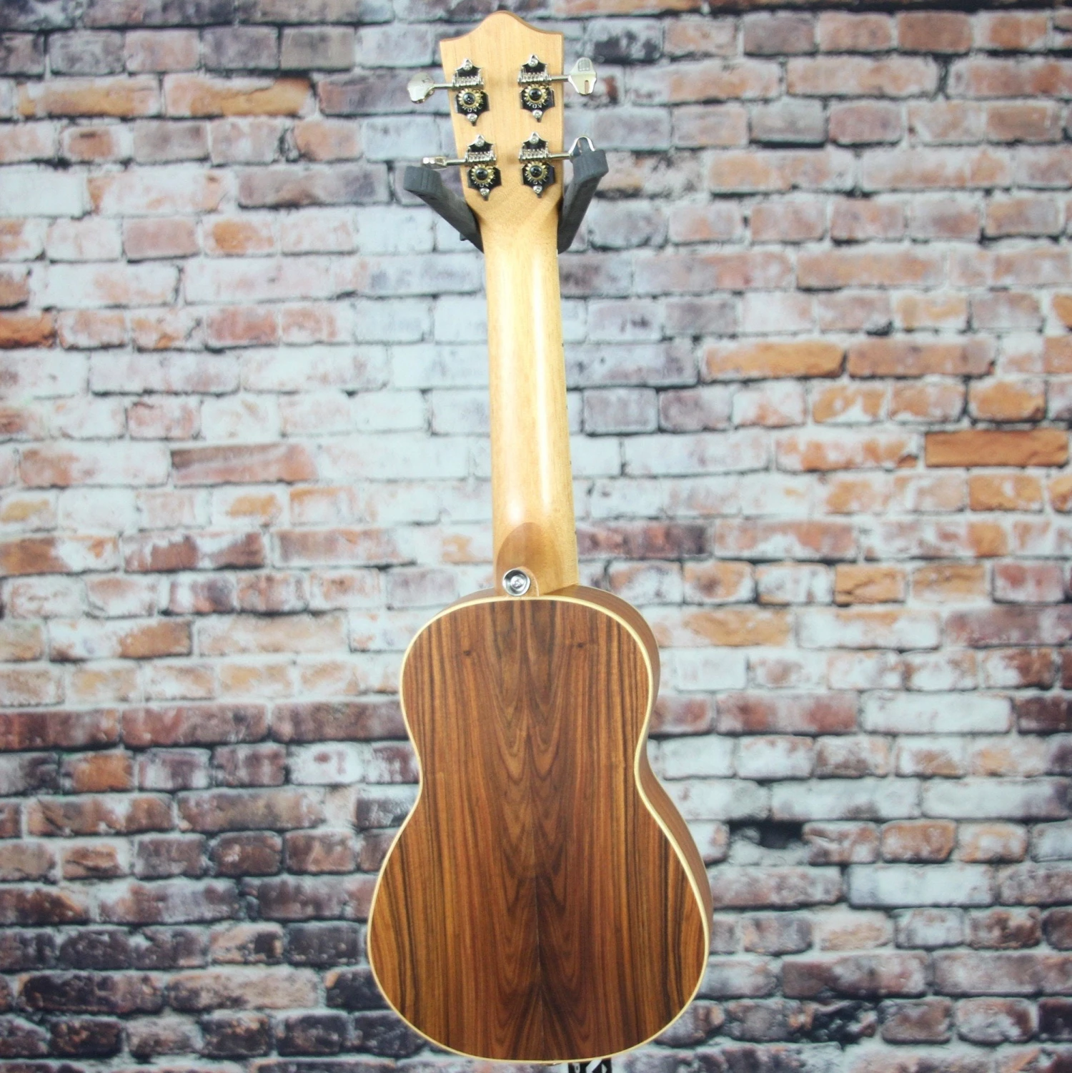 A Solid Spruce top is a great sound conductor, giving a punchy tone with good projection. The body is richly grained Morado to add tonal warmth.