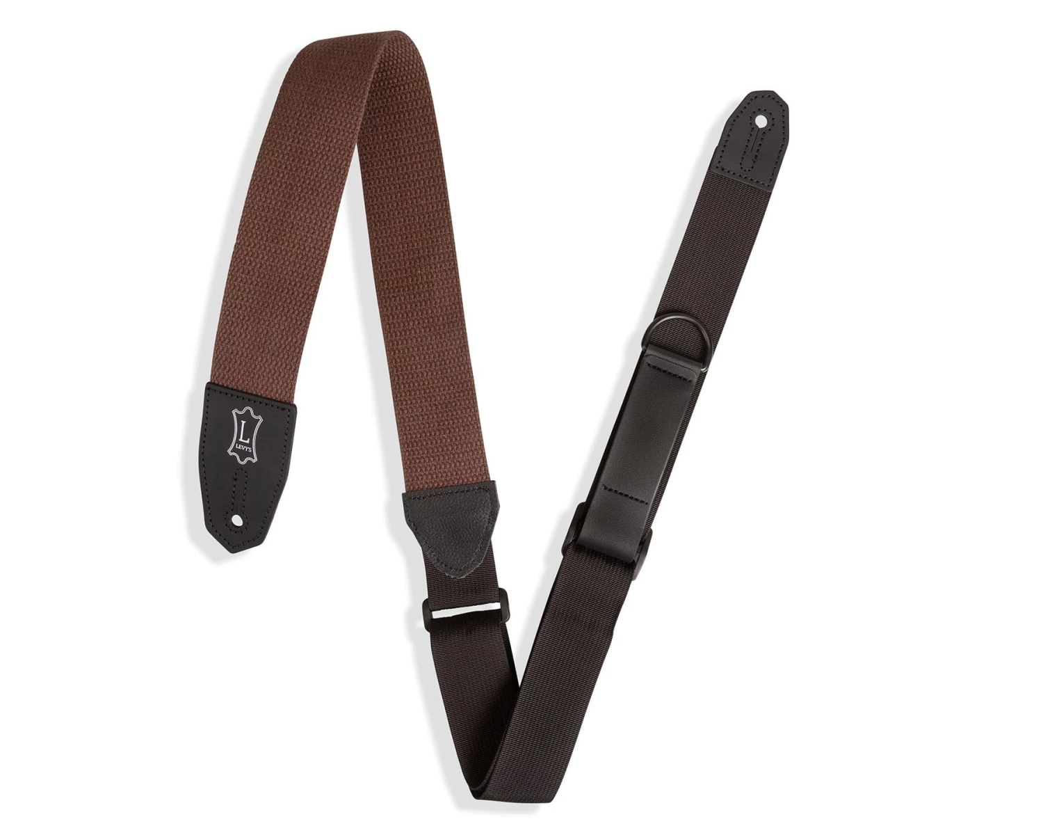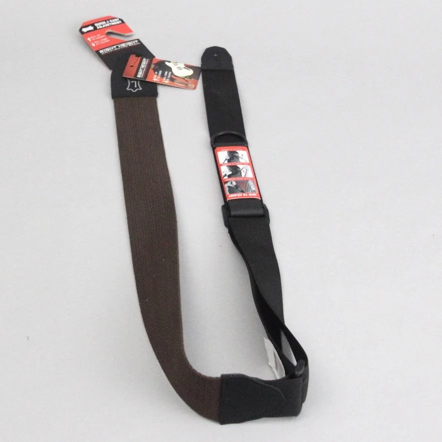 3 inch Right Height Brown Cotton Leather Guitar Strap Featuring RipChord Technology™ for Easy Adjust. Black Webbing And Leather With Polyester Webbing Adjustable From 43 to 57 inches.