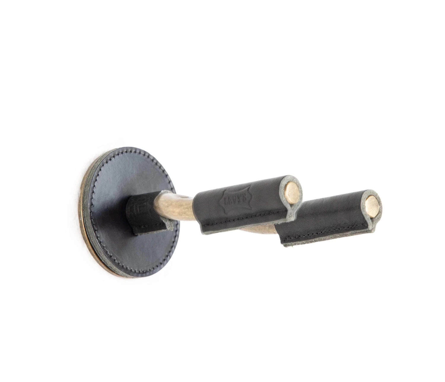 - Forged Steel Guitar Hanger with Brass Metal & Black Veg-Tan Leather Yoke Wraps