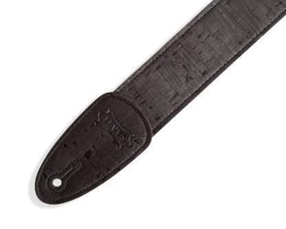 2 inch Cork Guitar Strap in Black on Black Cotton Webbing with Two-Ply Black Cork Ends and Black Plastic Slide and Loop Adjustment. Adjustable from 35 to 60 inches.