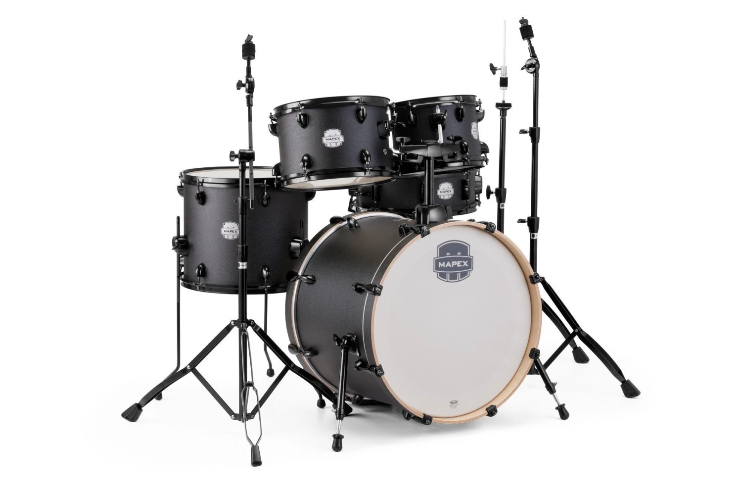 The Mapex Storm Series delivers great sound and dynamic looks right out of the box! Every Storm set has 100% Poplar shells with Mapex SONIClear bearing edges for quick and effortless tuning. Shorter tom depths deliver instant full tone and allow for easier tom positioning. The newly designed Storm hardware is rugged, with three tiered cymbal stands for maximum adjustments. The Storm series has got it all- SONICLEAR Edges, NEW 400 Series Hardware, and Remo drumheads.