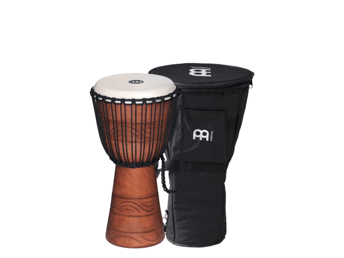 The MEINL Original African Style Rope Tuned Wood Djembes are carved from one solid piece of plantation grown Mahogany Wood. The Mali-Weave rope tuning system guarantees a proper and long long-lasting tuning of the instrument. The Water Rhythm Series features a carved design evocative of ocean waves, and all djembes come bundled with the Professional Djembe Bag.