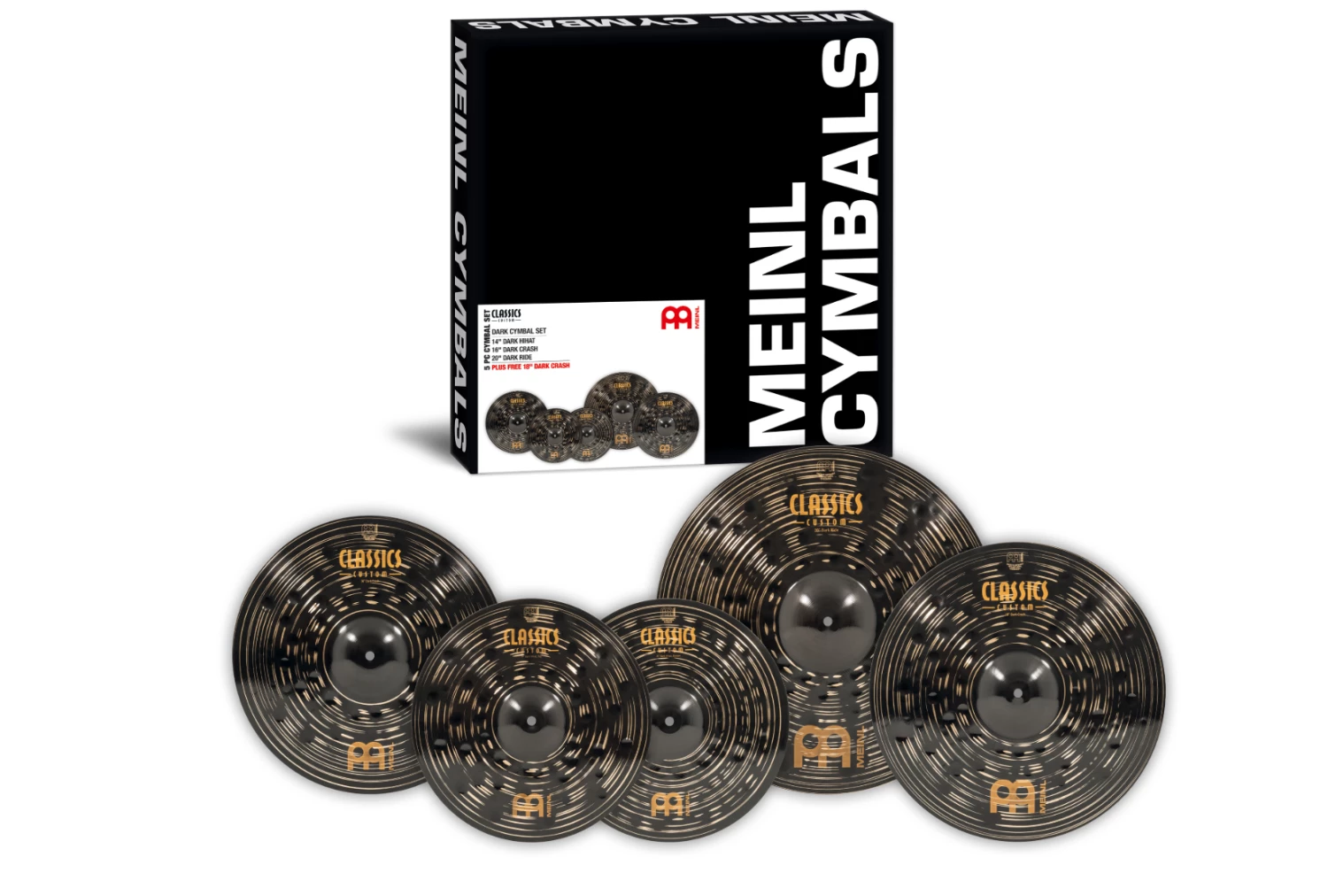 This Classics Custom Dark cymbal set features a pair of 14″ Dark hihats, a 16″ Dark crash, a 20″ Dark ride, and a FREE 18″ Dark crash. The extra deep hammering on these cymbals darkens and dries the tone while adding complexity to their aggressive, yet dark and warm sound. Perfect for power or fusion players. They are made in Germany from B10 bronze alloy, feature a lathe formed profile and dark finish.