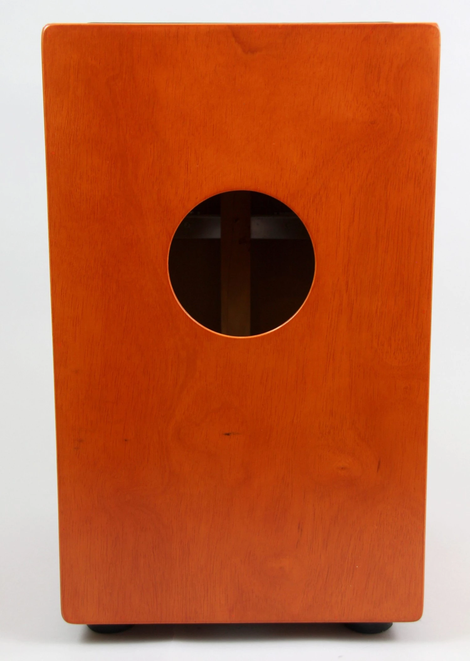 The snares touch the frontplate from the inside and deliver the classical cajon sound, which is requisite in Flamenco music. A knurled knob adjusts the amount of pressure used to press the snare wires against the frontplate. The rattle effect ranges between light and sensitive to very loud can be achieved through adjustment. The entire snare unit can even be turned off completely.