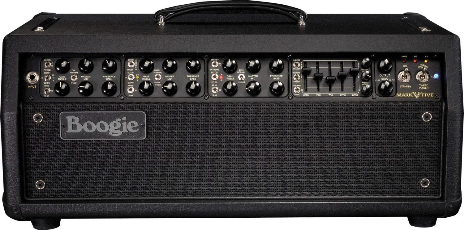 The MARK V™ is really a collection of amplifiers. There are far too many circuits and sounds to think of it as merely an amp. It is also a living history of our company. From the groundbreaking MARK I™ that introduced the world to high-gain with it’s cascading pre amp, to the Mark II™ – the world’s first high gain Dual Mode Channel Switching amplifier and it’s later siblings that introduced Simul-Class™ power. From the MARK III™ that ushered in the era of 3 Channel footswitching performance, to the MARK IV™ which gave all this power individual control, the MARK V is the embodiment of the last 40 years of guitar amp history.