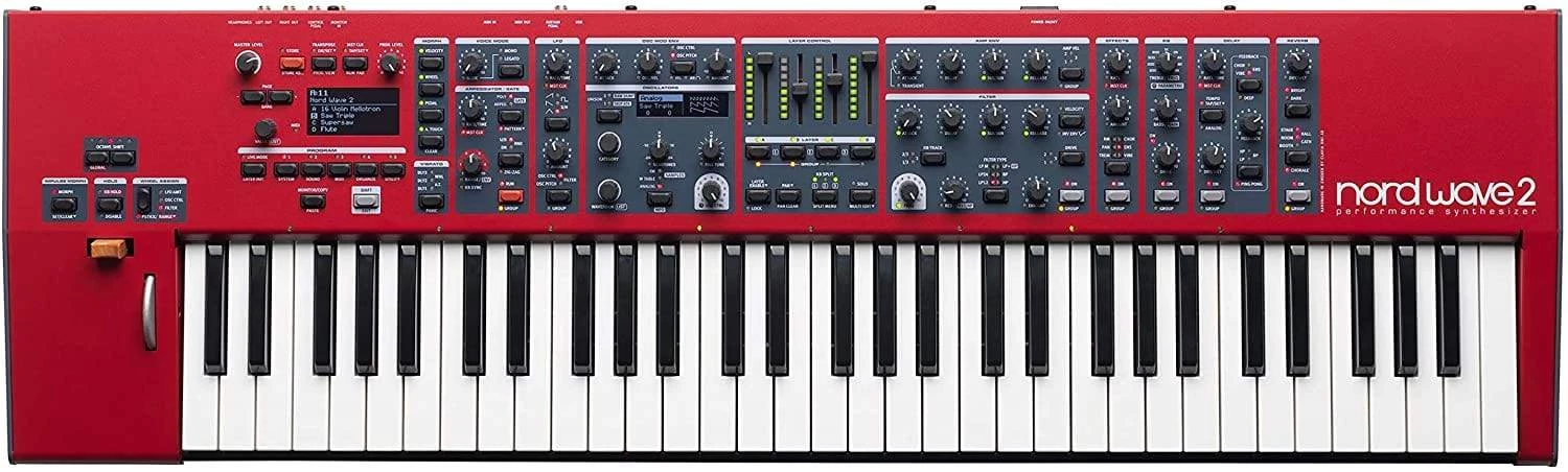 The Nord Wave 2 is a powerful 4-part performance synthesizer combining Virtual Analog synthesis, Samples, FM and Wavetable with an intuitive layer-focused interface.