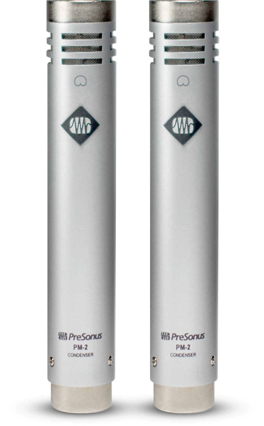 Ideal for stereo recordings of acoustic instruments, drum overheads, ensembles and more, the PreSonus PM-2 stereo microphone set provides the tools you need to create professional results. Each PreSonus PM-2 small-diaphragm cardioid condenser microphone is equipped with a ¾” gold-sputtered capsule housed in an ultra-light chassis, making it easier to perfectly position your microphones without fighting gravity. Sold as a sonically matched pair, the PM-2 comes equipped with a stereo bar for XY mic placement. PM-2 microphones can be used together or individually, making them an excellent addition for any home or professional recording environment.