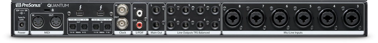 A great choice for a wide variety of recording environments, the 26×32-channel Quantum is PreSonus®’ fastest and best-sounding audio interface, taking advantage of the high-speed Thunderbolt™ bus and a no-frills, direct-to-DAW (no DSP added) signal path to achieve extremely low latency. Two combo mic/instrument/line inputs and 6 mic/line inputs with recallable XMAX preamps combine with cutting-edge 24-bit, 192 kHz converters with 120 dB of dynamic range to deliver superb audio quality. For more I/O channels, simply stack up to 4 Quantum interfaces via Thunderbolt to create a monster 96×96 system. You also get MIDI and word clock I/O. Using the included Studio One Artist DAW or UC Surface control software, you can remote-control the preamps and many other features. To top it off, Quantum owners get the Studio Magic Plug-in Suite free and can upgrade to Studio One Professional for 50% off.