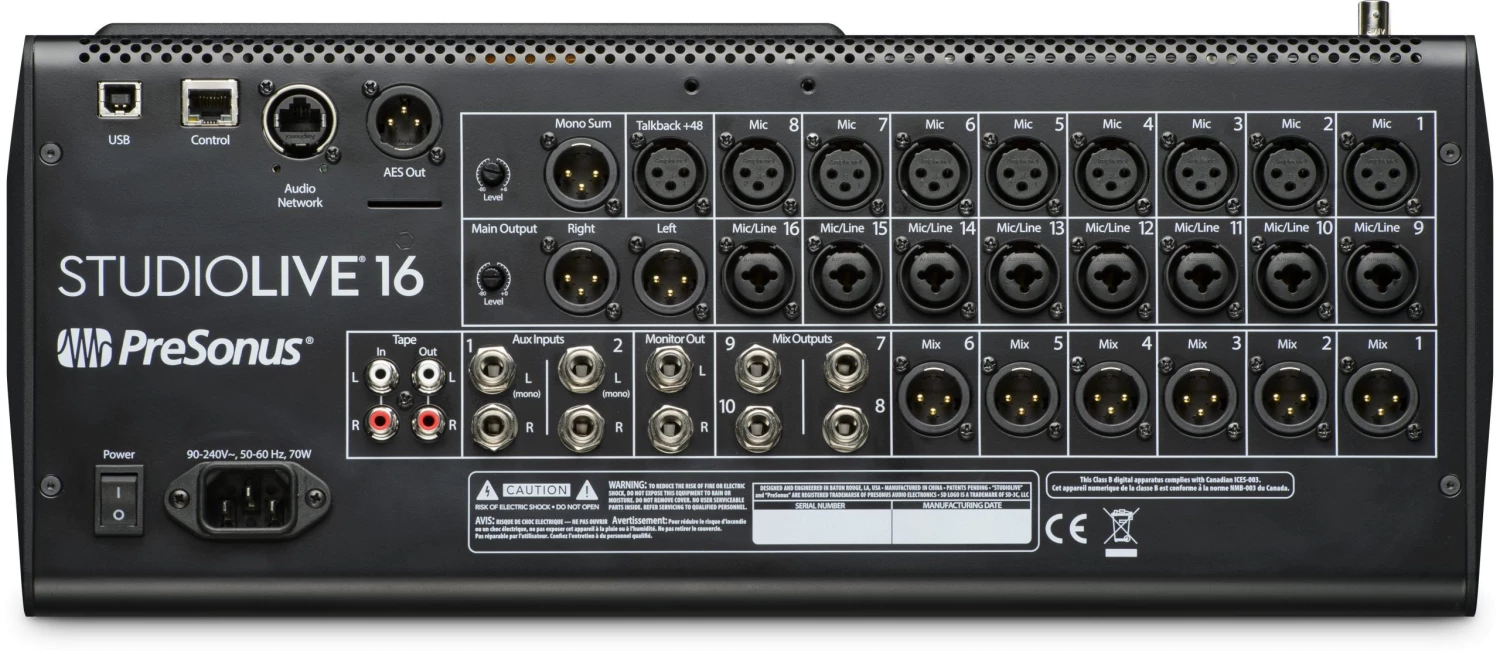 The 32-channel StudioLive® 16 is the most powerful and flexible digital mixer available for live sound and recording. PreSonus® gave the StudioLive 16 the works: 40 total inputs; extensive AVB networking; more recording tracks over USB than any other digital mixer; touch-sensitive motorized faders; and a host of State-space modeled Fat Channel plug-ins that let you expand your processing options. Packaged with a full suite of integrated software, including PreSonus’ Studio One® DAW and Capture™ live-recording software, the StudioLive 16 is a groundbreaking professional digital mixer and USB audio interface in a compact, scalable design.