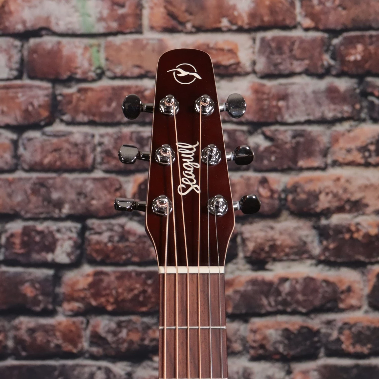 Autumn is a time for change and the Seagull Entourage Series has undergone a beautiful change of its own with its new Autumn Burst finish! The Entourage Autumn Burst also boasts other exciting new features, such as an eye-catching white binding, a redesigned pickguard, and a richer/shaded finish on the back and sides. The traditional dreadnought shape is perfect to help your playing project over campfire sing-alongs or cut through any given acoustic situation.