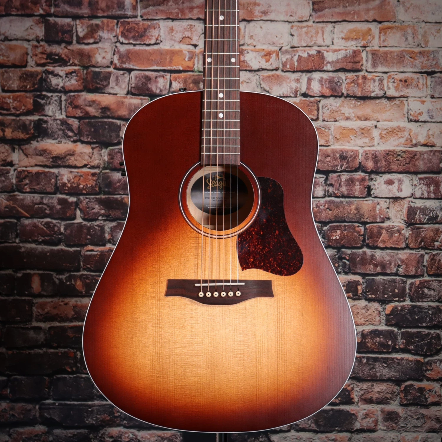 Autumn is a time for change and the Seagull Entourage Series has undergone a beautiful change of its own with its new Autumn Burst finish! The Entourage Autumn Burst QIT also boasts other exciting new features, such as an eye-catching white binding, a redesigned pickguard, and a richer/shaded finish on the back and sides. It comes equipped with the Godin QIT system; ready to turn it up as you hit the stage and keep you in tune thanks to its built-in tuner.