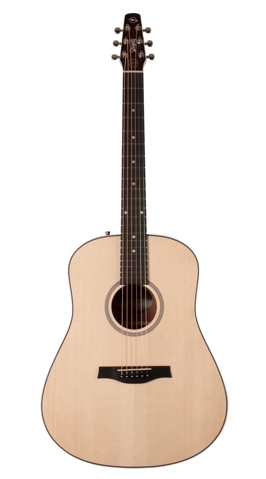 The Seagull Maritime Solid Wood Series (SWS) features warm-sounding solid mahogany back sides, coupled with solid pressure tested spruce tops for a projecting tone, and Richlite® fretboards for a bold and clear sound. The Maritime SWS SG also comes with a wide 1.8’’ nut width—perfect for finger picking—a semi-gloss finish, and an ebony bridge. Another noteworthy feature is the shadowed burst on the body and headstock.