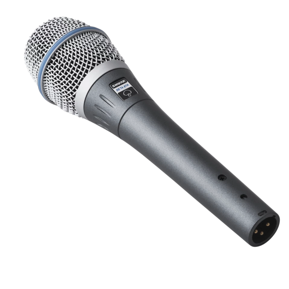 The Shure Beta 87A is professional quality condenser vocal mic that works great in the studio while being rugged enough for the road. Used for studio recording, live sound reinforcement, and broadcasting. The Beta 87a features a low-frequency roll off that helps eliminate low end spikes when due to the proximity effect. The supercardioid polar pattern ensures the mic pics up exactly what want, and nothing you don’t.