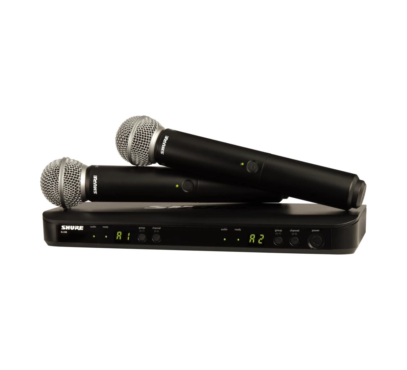 - Includes 2 BLX2/SM58 handheld transmitters, BLX88 dual-channel wireless receiver, power supply, AA batteries, and user guide