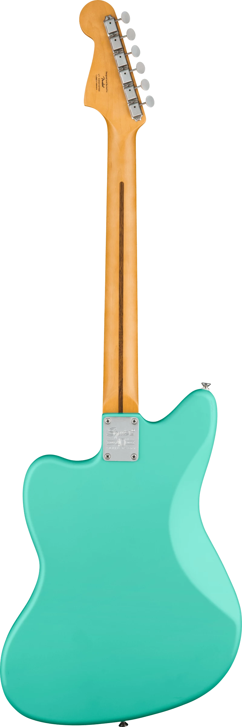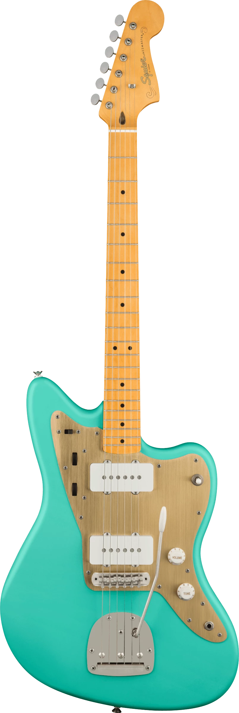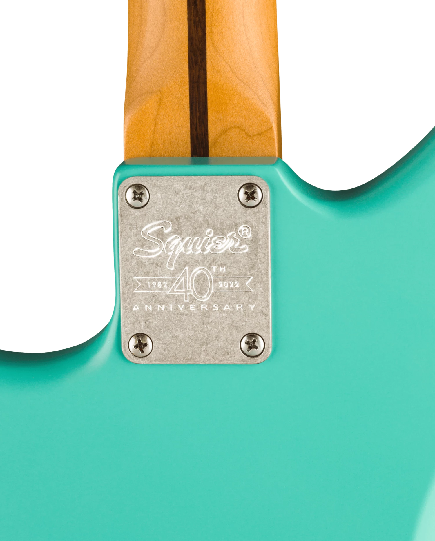 The Squier® 40th Anniversary Jazzmaster®, Vintage Edition is a soulful tribute model trimmed with a collection of classic features for the retro-minded Squier enthusiast. Featuring aged chrome hardware, an anodized aluminum pickguard, a vintage-tinted maple neck, an engraved anniversary neck plate and satin finish throughout, this Jazzmaster honors the heritage of the Squier catalog and its ancestry. Player-friendly refinements of this commemorative model include a slim and comfortable “C”-shaped neck profile for an easy playing feel, vintage-style tuning machines and 6-saddle floating bridge and tremolo for authentic performance and style, and Fender-Designed single-coil pickups with alnico 5 magnets for familiar Jazzmaster tone.