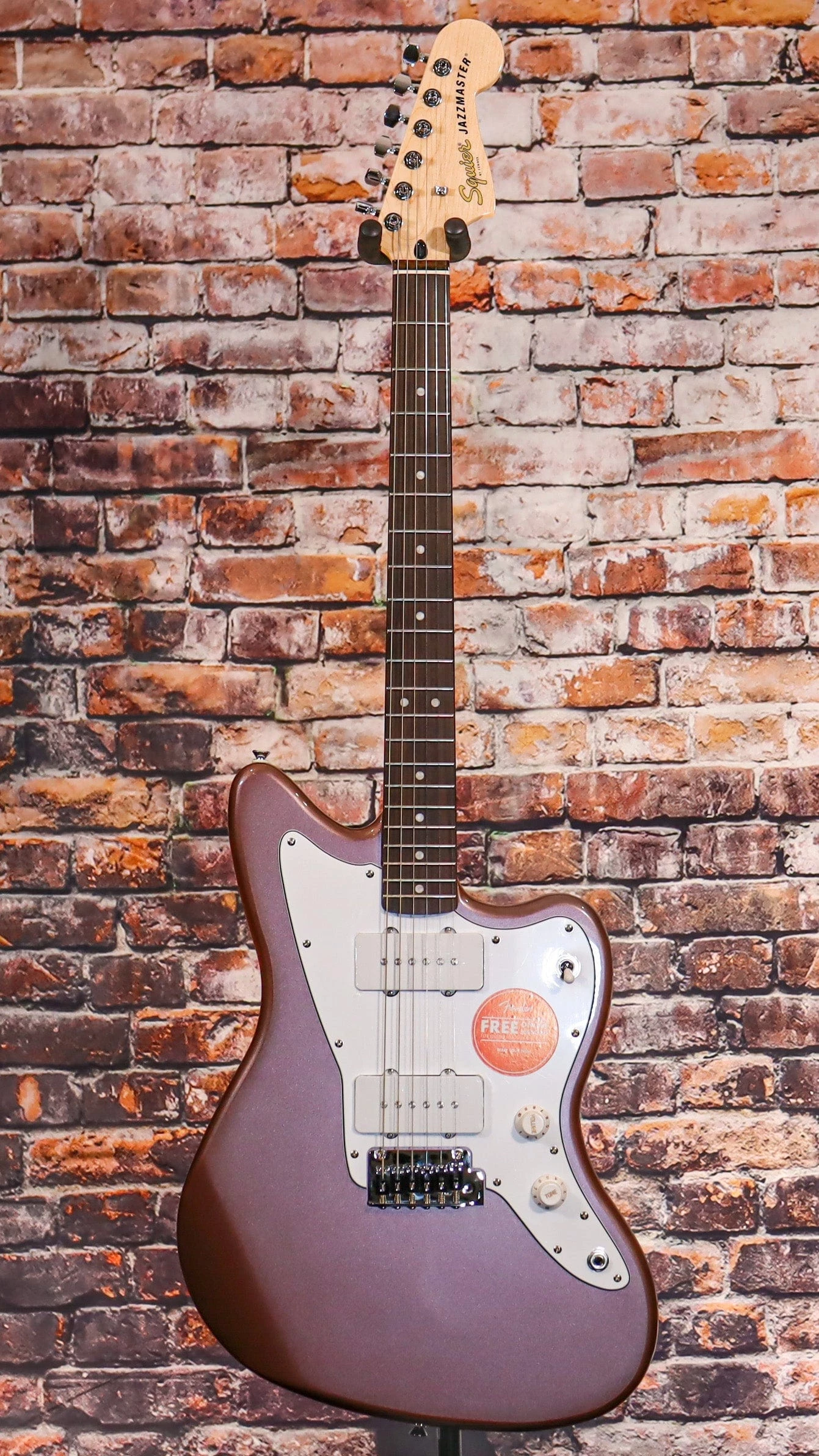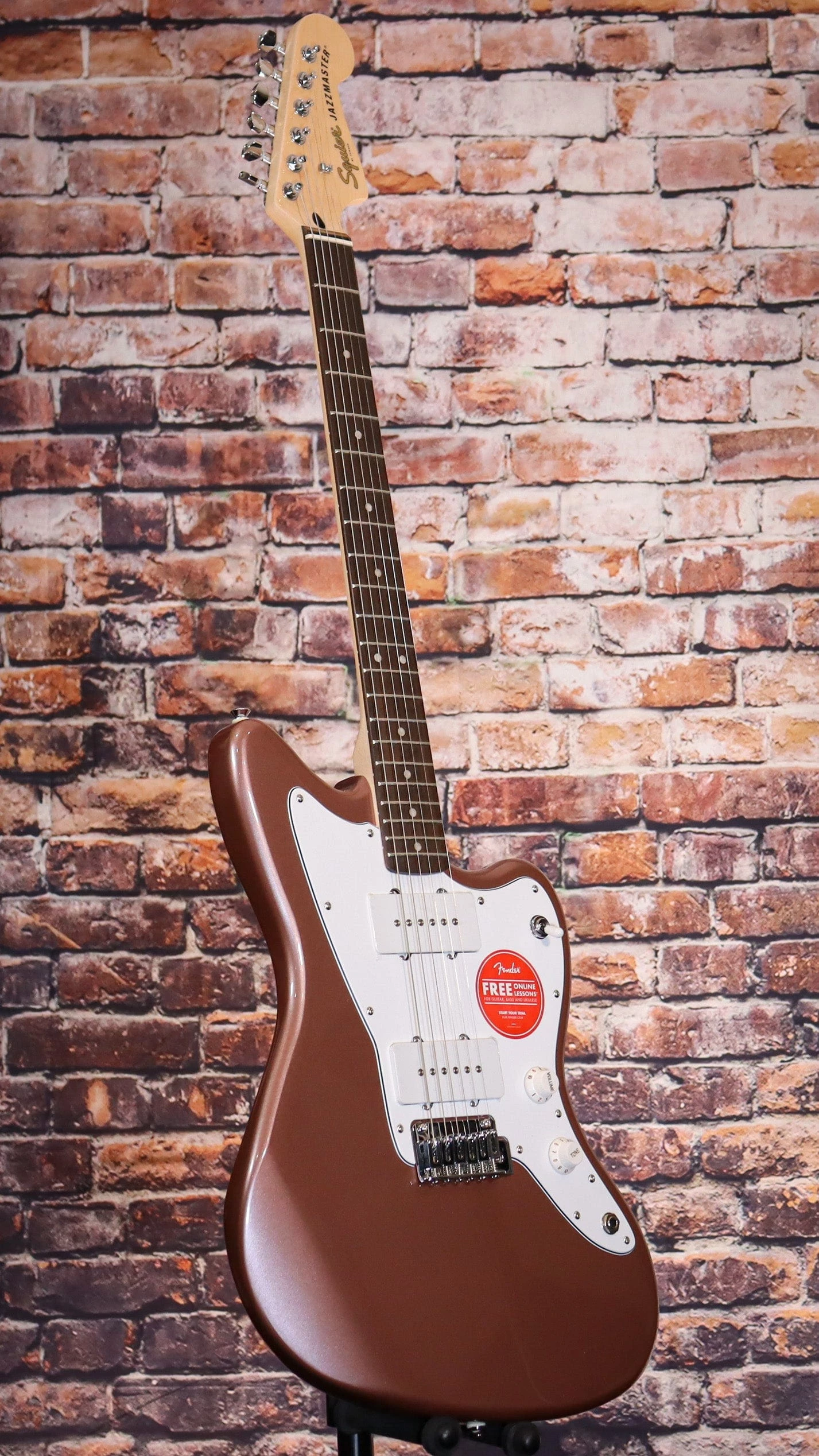 A superb gateway into the time-honored Fender® family, the Squier® Affinity Series™ Jazzmaster® delivers legendary design and quintessential tone for today’s aspiring guitar hero. This model features several player-friendly refinements such as a thin and lightweight body, a slim and comfortable “C”-shaped neck profile, a modern 2-point tremolo bridge for superior tremolo action and sealed die-cast tuning machines with split shafts for smooth, accurate tuning and easy restringing. Loaded with two Squier single-coil Jazzmaster pickups with 3-way switching for genre-defying sonic variety, this model is ready to accompany any player at any stage.