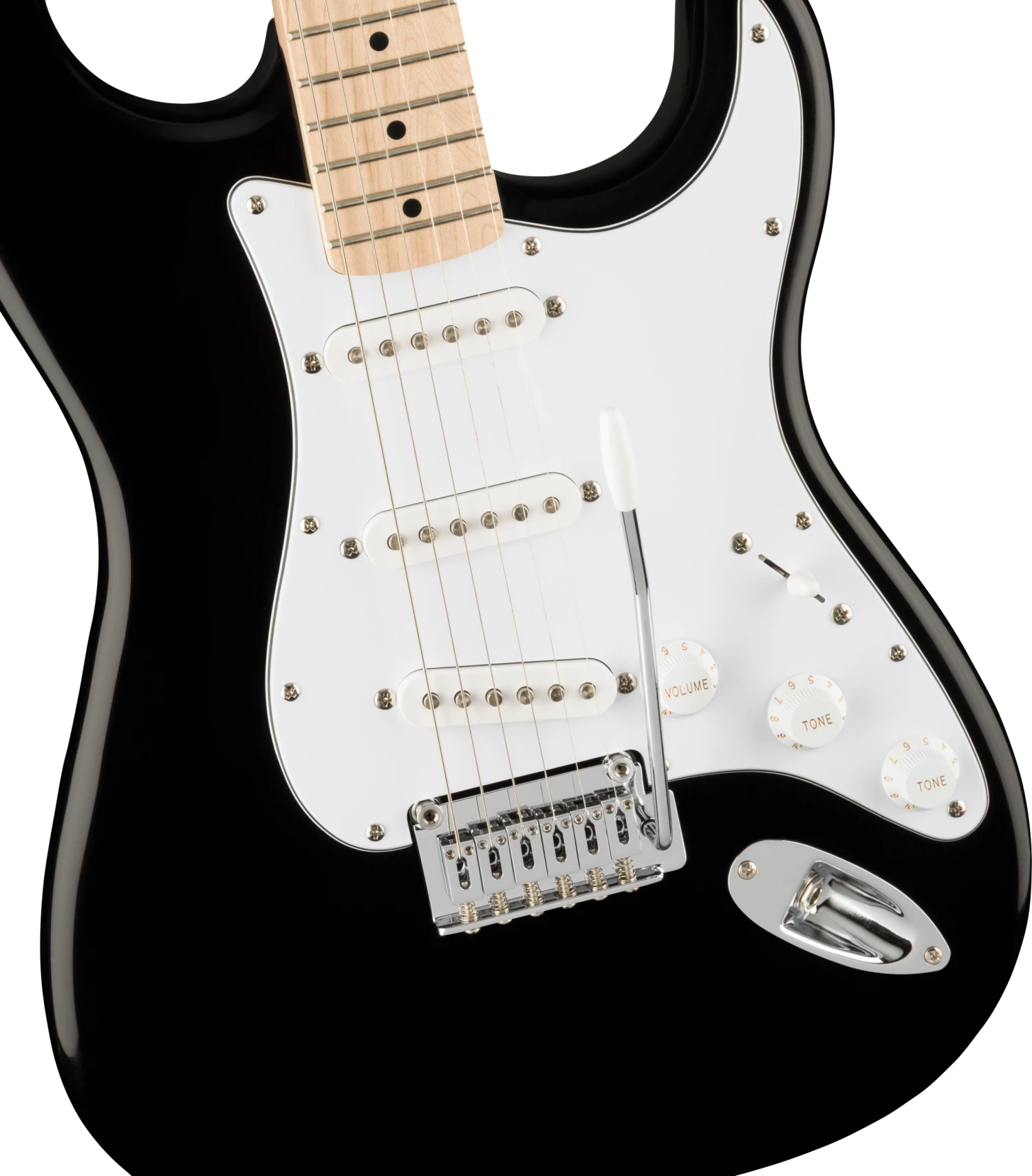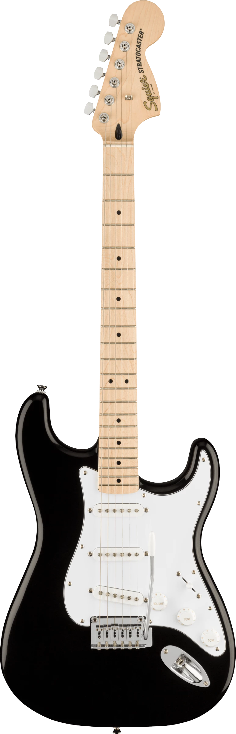 A superb gateway into the time-honored Fender® family, the Squier® Affinity Series™ Stratocaster® delivers legendary design and quintessential tone for today’s aspiring guitar hero. This Strat® features several player-friendly refinements such as a thin and lightweight body, a slim and comfortable “C”-shaped neck profile, a 2-point tremolo bridge for superior tremolo action and sealed die-cast tuning machines with split shafts for smooth, accurate tuning and easy restringing. Loaded with a trio of Squier single-coil Strat pickups with 5-way switching for genre-defying sonic variety, this model is ready to accompany any player at any stage.