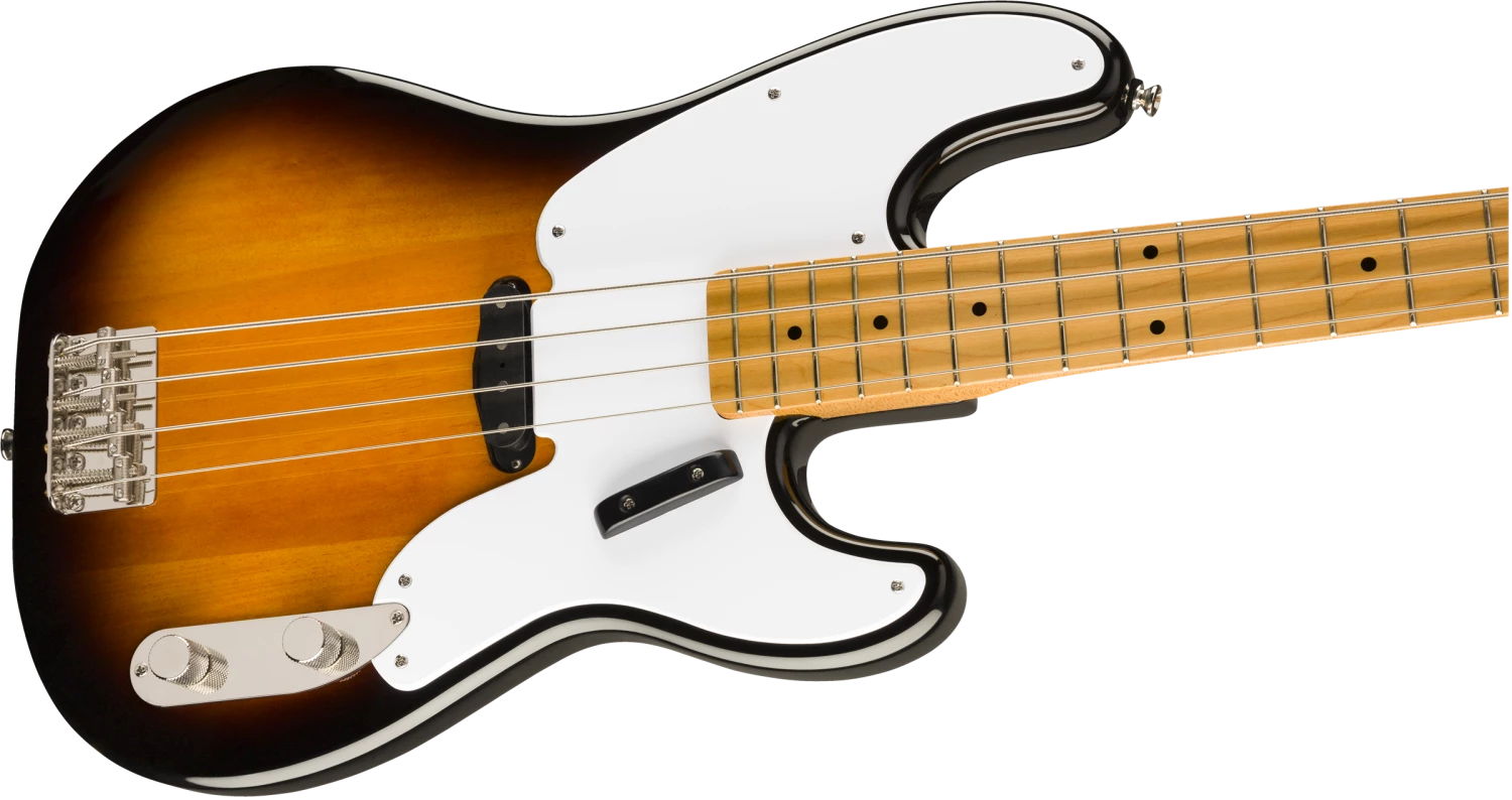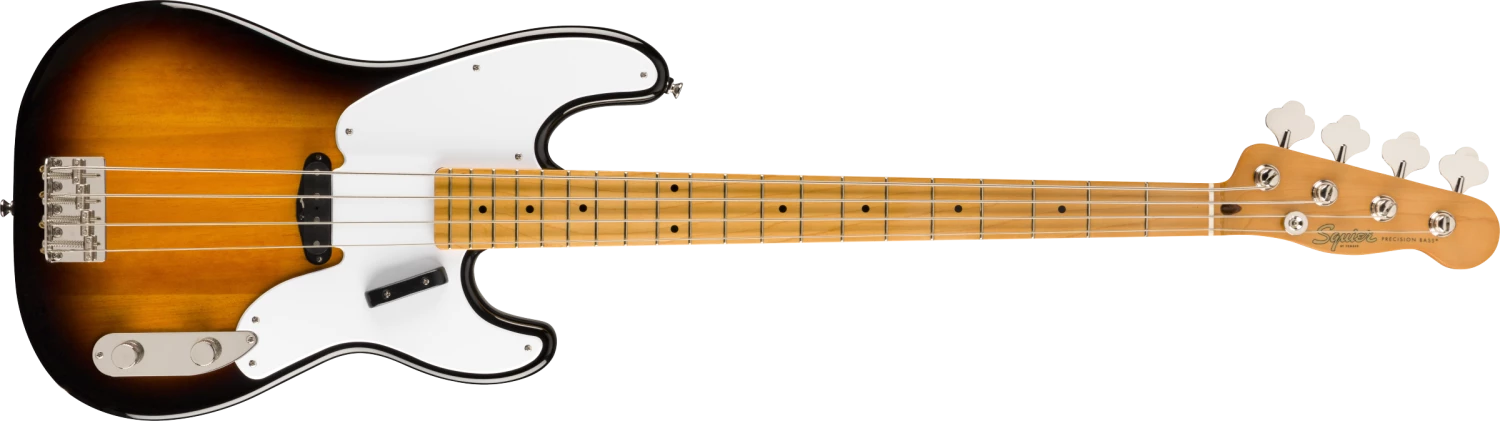A celebration of the birth of the P Bass® in the early 1950s, the Classic Vibe ‘50s Precision Bass produces massive tone courtesy of its Fender-Designed alnico split-coil pickup. Player-friendly features include a slim, comfortable “C”-shaped neck profile with an easy-playing 9.5”-radius fingerboard and narrow-tall frets as well as a vintage-style bridge with threaded saddles. This throwback Squier model also features 1950s-inspired headstock markings, rich-looking nickel-plated hardware and a slick vintage-tint gloss neck finish for an old-school vibe.