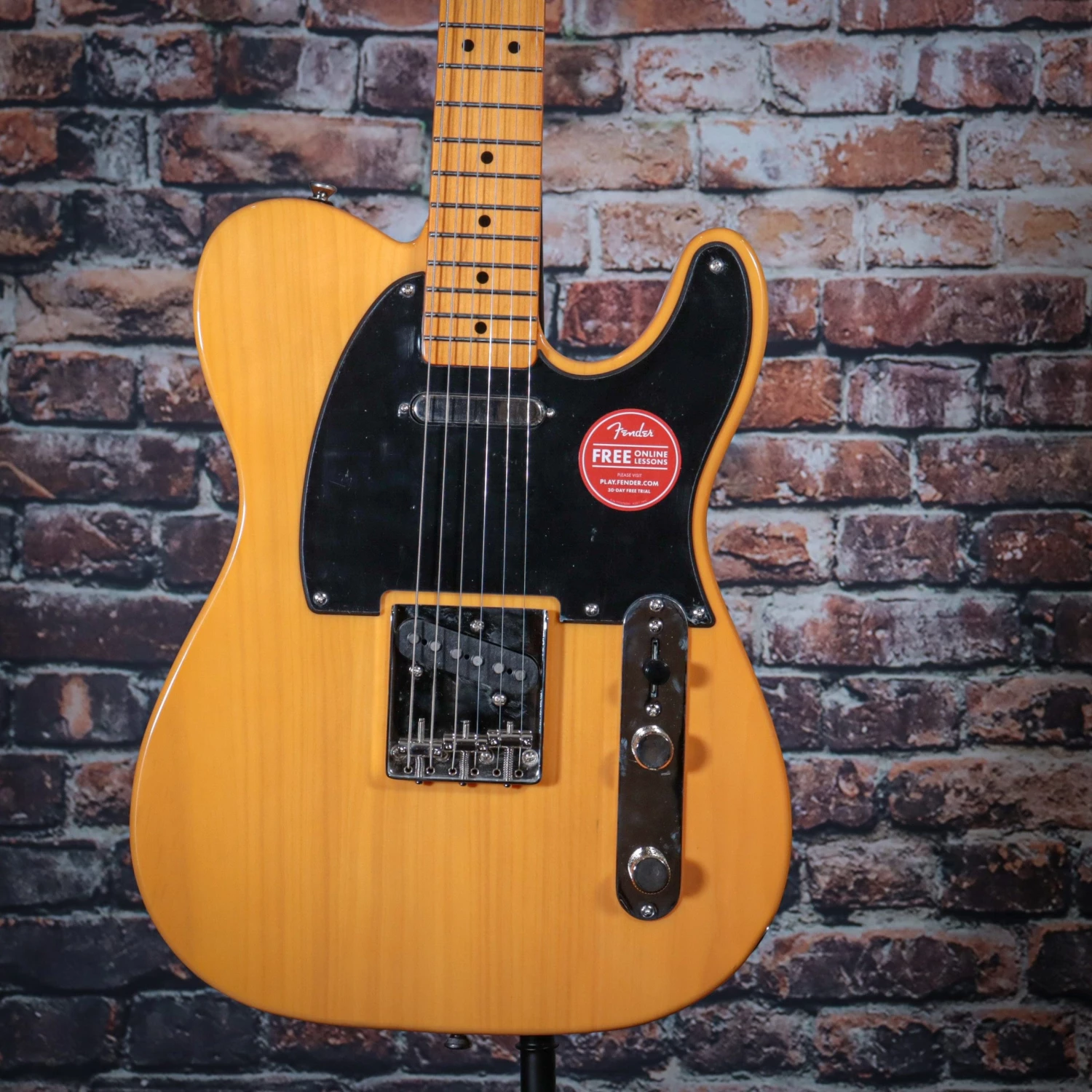 A celebration of the birth of the Tele® in the early 1950s, the Classic Vibe ‘50s Telecaster creates incredible tone courtesy of the Fender-designed alnico single-coil pickups. Player-friendly features include a slim, comfortable “C”-shaped neck profile with an easy-playing 9.5”-radius fingerboard and narrow-tall frets, as well as a vintage-style Telecaster bridge with barrel saddles and string-through-body design. This throwback Squier model also features 1950s-inspired headstock markings, rich-looking nickel-plated hardware and a slick vintage-tint gloss neck finish for an old-school vibe.