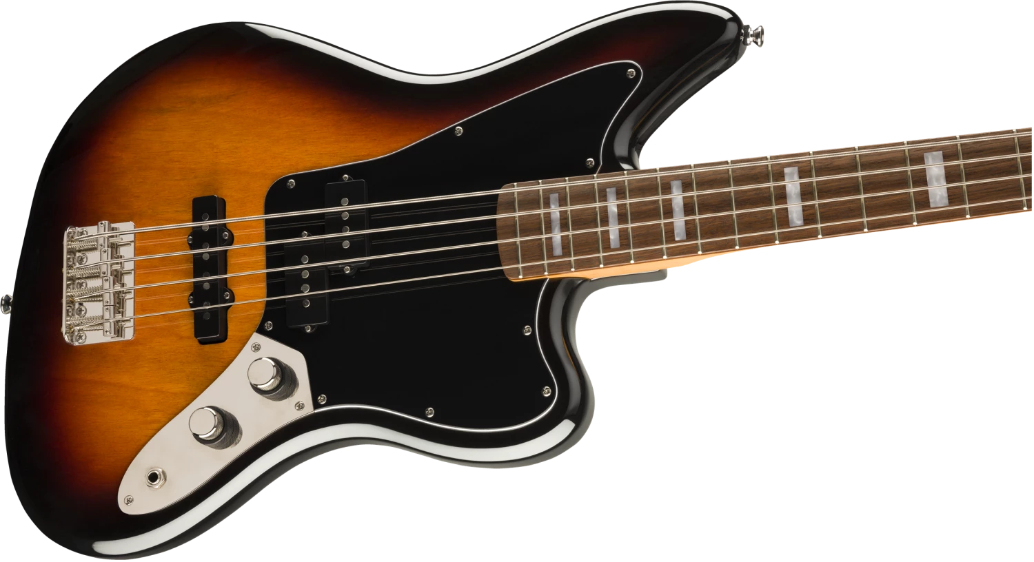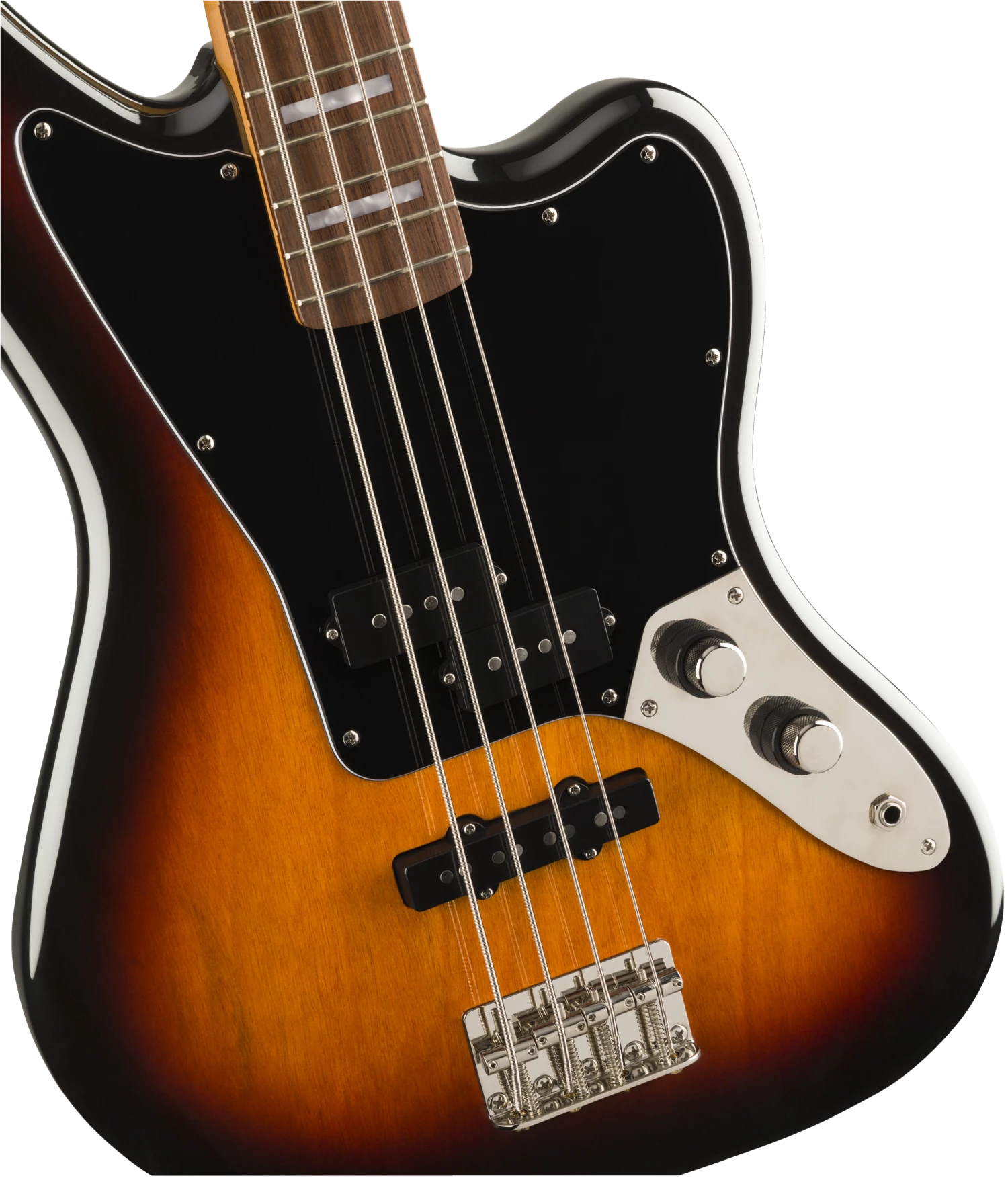 The Classic Vibe Jaguar Bass turns up the volume on retro style, combining the iconic body shape of the Jaguar with the massive tone of its Fender-Designed alnico pickups. Player-friendly features include a medium 32” scale length, a slim, comfortable “C”-shaped neck profile with an easy-playing 9.5”-radius fingerboard and narrow-tall frets as well as a vintage-style bridge with slotted barrel saddles. This throwback Squier model also features 1970s-inspired headstock markings, rich-looking nickel-plated hardware and a slick vintage-tint gloss neck finish for an old-school vibe.