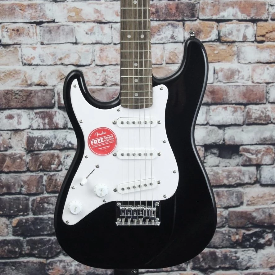 The Squier Mini Stratocaster® is the perfect companion for players seeking a reduced-size instrument with classic styling and familiar Fender® tone. Highlights include a thin and lightweight body, an easy-to-play “C”-shaped neck profile, a trio of Squier single-coil pickups with 5-way switching for sonic variety, and a hardtail bridge for solid tuning stability.