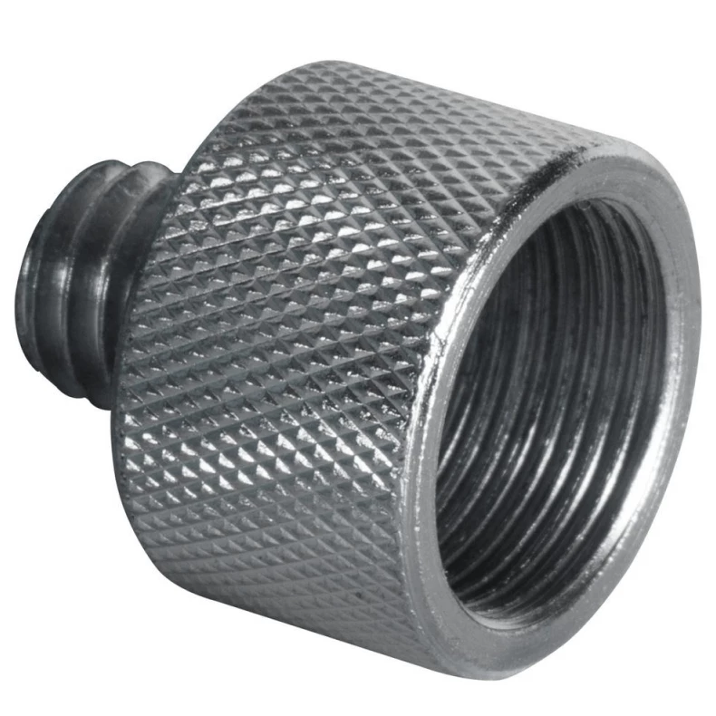 3/8″ male to 5/8″ female for use with standard mic stands and mic clips/microphones with European 3/8″ threaded inserts.