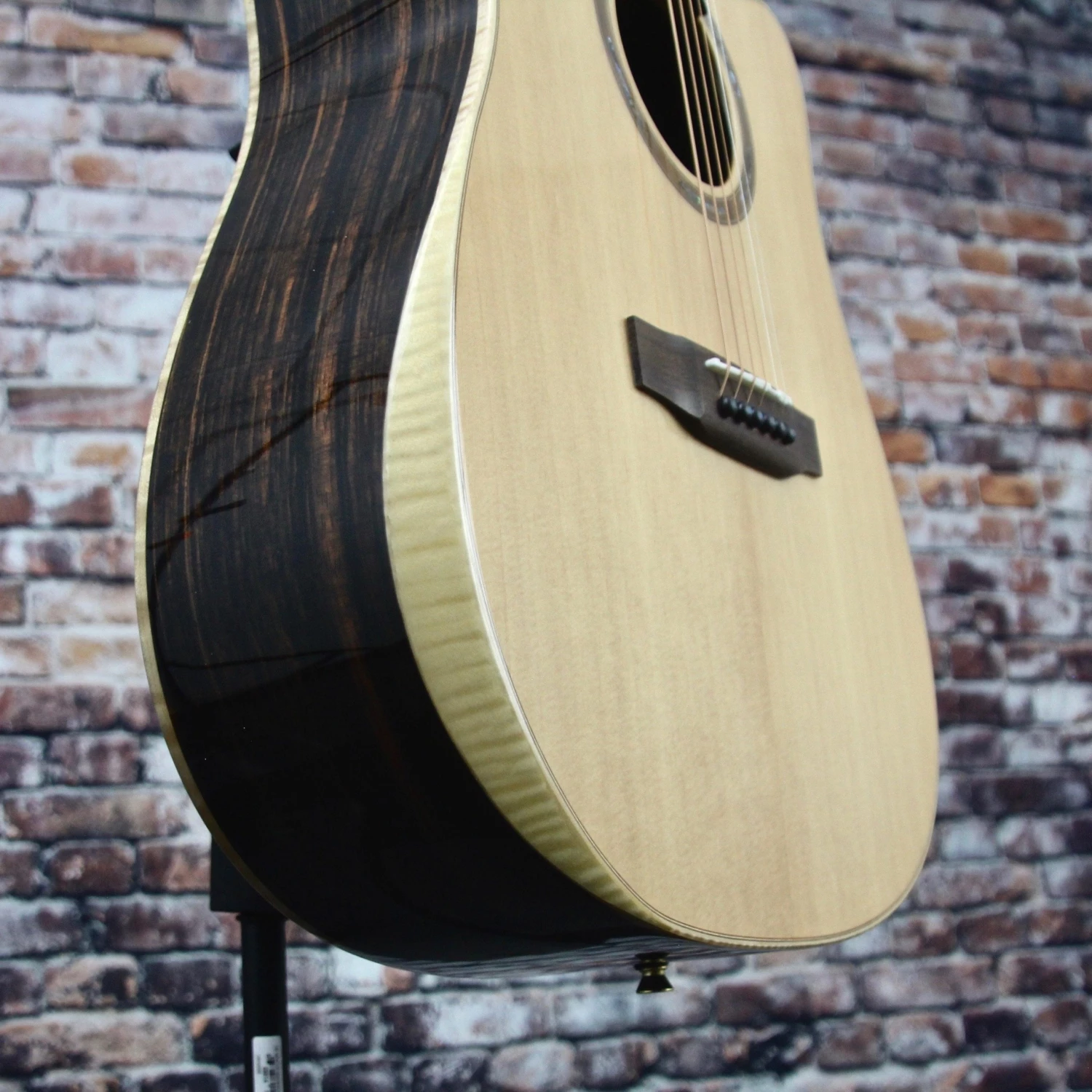Teton STS180CENT-AR acoustic-electric guitar in a natural finish. It features a dreadnought style body with a solid spruce top and ebony back & sides, mahogany neck, rosewood fretboard, and Fishman Flex Plus preamp system.