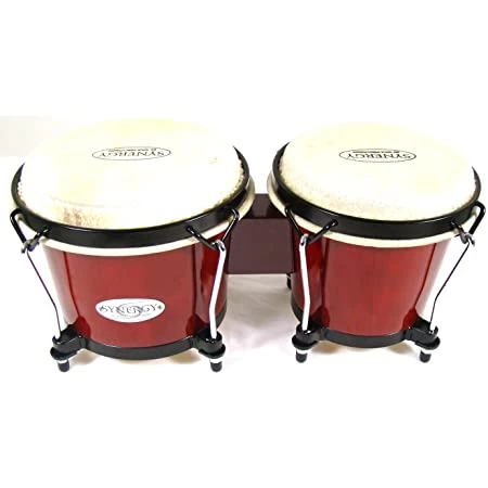 The Toca Synergy Bongo set featuring 2 ply select wood shells has a very expressive sound and feel. The set has an Afro-Cuban design and sound, with strong bass tones with black powder coated hoops and lugs and natural rawhide heads. The EasyPlay hoops protect your hands, and enhance the sound of the drum. They stand up to high tuning ranges, due to their 4-bolt tension plates that spread the tension over the shell. This set is great for players of all ages and styles.