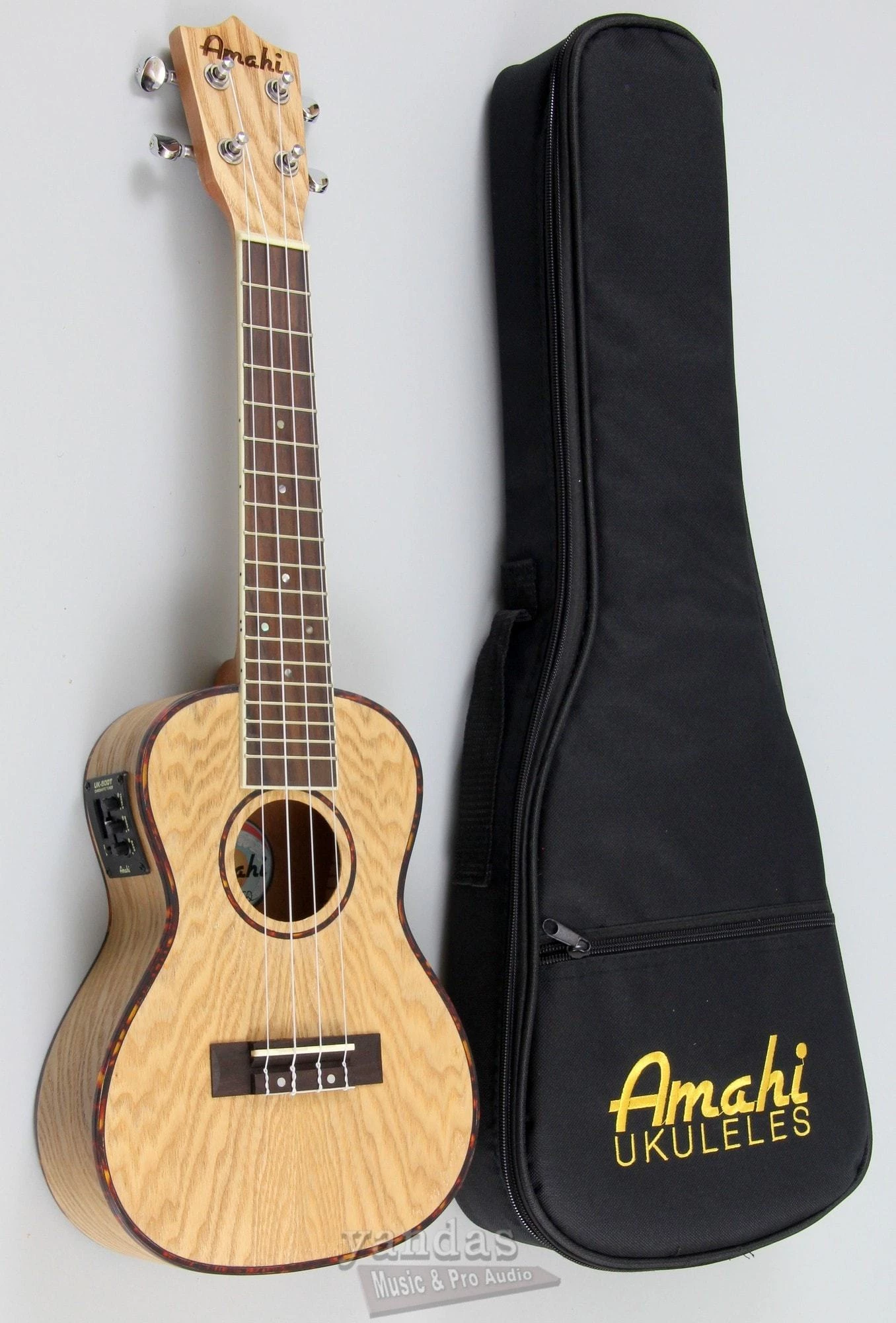 Amahi is a great company, based in the U.S., with a ton of experience! The Classic Quilted Ash Uke is available with and without electronics, and has a look and sound of its own! The unique wood used in its construction creates a beautiful instrument and tone, without sacrificing value!