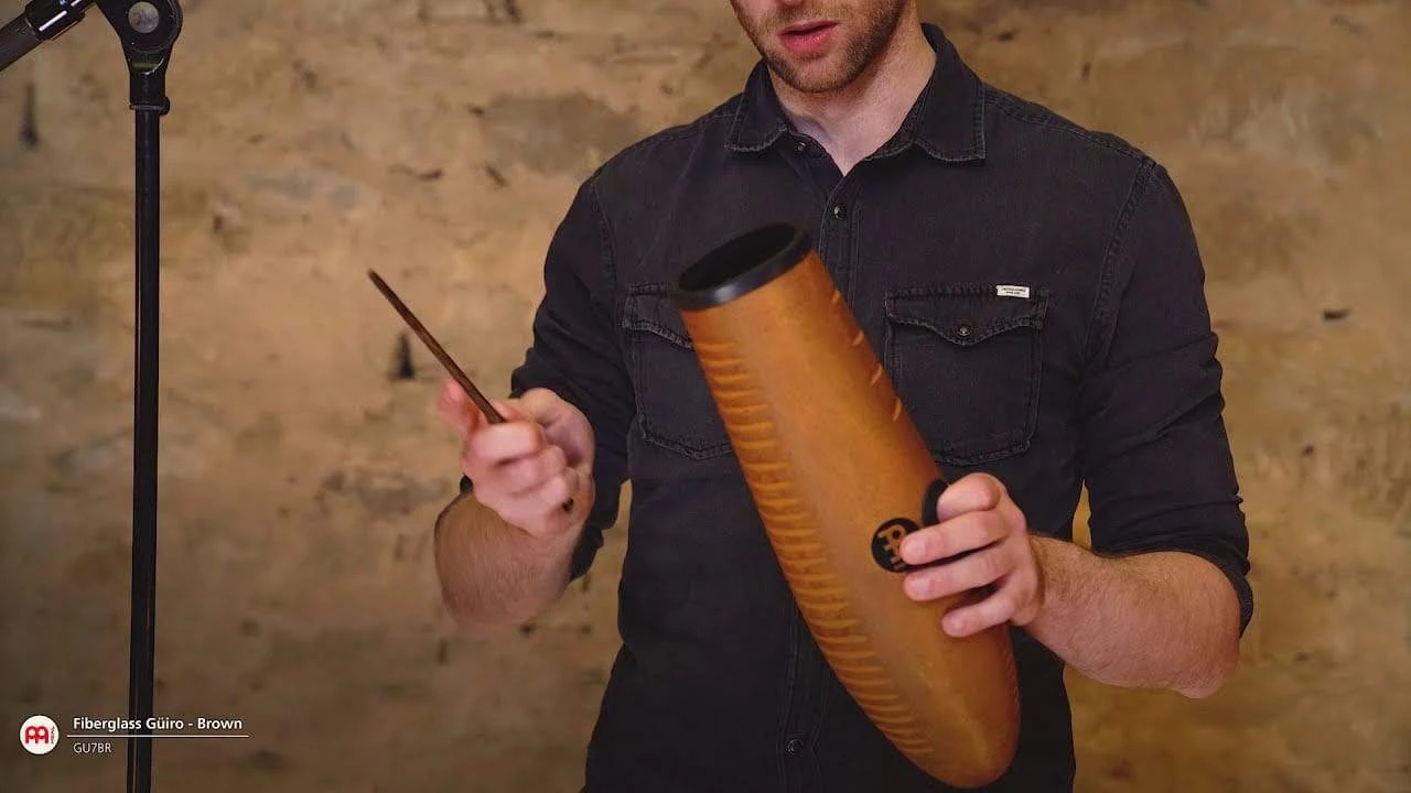 The MEINL Percussion Fiberglass Guiros offer three different striking surfaces for enhanced sounds and padded grip holes.