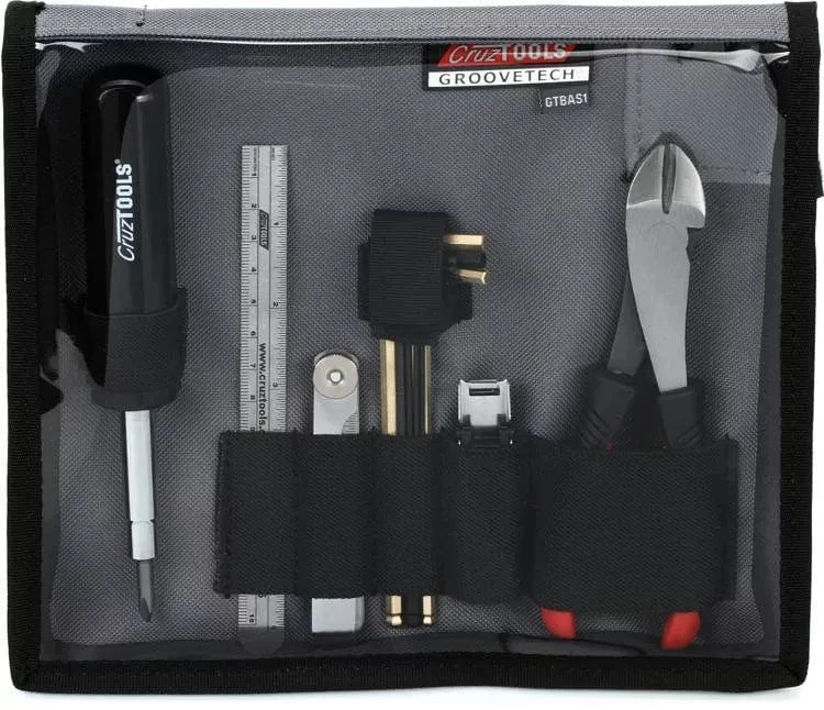 You’ll be completely equipped to give your bass a total setup with the GrooveTech Bass Player Tech Kit — and it’s stored in a compact pouch that’s easy to keep in your gig bag. Best of all, it comes with an Easy Setup Guide for quick reference, taking the guesswork out of setting your action, adjusting your truss rod, intonating your instrument, and more. Complete with a hex key set, string cutters, and everything else you need for a setup.